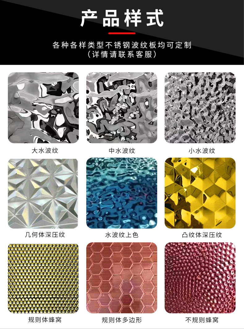 表面:拉絲、鏡面、噴砂、鍍鈦、蝕刻、抗指紋