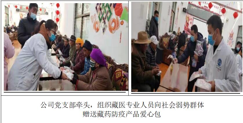 新型冠狀病毒感染的肺炎疫情,牽動(dòng)著全國(guó)人民的心,西藏雄巴拉曲神水藏藥有限公司作為一家藥品生產(chǎn)企業(yè),面對(duì)新型冠狀病毒感染的肺炎疫情嚴(yán)峻形勢(shì),認(rèn)真貫徹落實(shí)習(xí)近平總書(shū)記關(guān)于做好疫情防控工作的重要指示精神和黨中央、國(guó)務(wù)院、自治區(qū)黨委政府、區(qū)工商聯(lián)及拉薩市委、市政府的決策部署,于1月23日第一時(shí)間召開(kāi)專門(mén)會(huì)議動(dòng)員廣大員工積極投入防控疫情的工作實(shí)際,并要求全體員工切實(shí)把思想和行動(dòng)統(tǒng)一到習(xí)近平總書(shū)記關(guān)于“要把人民群眾生命安全和身體健康放在第一位,堅(jiān)決遏制疫情蔓延勢(shì)頭”以及齊扎拉主席關(guān)于“要把防控疫情工作作為當(dāng)前一項(xiàng)重大政治任務(wù)和衛(wèi)生健康領(lǐng)域的頭等大事”的重要指示精神上來(lái),集公司所有力量集中生產(chǎn)、供應(yīng)針對(duì)疫情的藏藥產(chǎn)品。并為發(fā)揮藏醫(yī)藥在應(yīng)對(duì)突發(fā)傳染病防治方面的優(yōu)勢(shì)和作用,組織公司藏醫(yī)藥專業(yè)人員部署相關(guān)產(chǎn)品的生產(chǎn)和供應(yīng)工作,配制了九味防瘟香囊、催湯散、流感丸、仁青常覺(jué)、仁青芒覺(jué)、二十五味肺病丸以及衛(wèi)生熏香等市場(chǎng)急需的疫情防控藏藥產(chǎn)品。并由公司黨支部牽頭,第一時(shí)間組織藏醫(yī)專業(yè)人員,自覺(jué)履行社會(huì)責(zé)任,優(yōu)先考慮社會(huì)弱勢(shì)群體,配備了包括九味防瘟香囊、催湯散、流感丸、仁青常覺(jué)等的防疫藏藥產(chǎn)品愛(ài)心包,前往拉薩市區(qū)的各敬老院、福利院、老年康養(yǎng)中心、流浪人員收容所等,開(kāi)展“攜手預(yù)防疫情·獻(xiàn)愛(ài)心公益活動(dòng)”,由公司藏醫(yī)專業(yè)人員向他們宣講疫情防控常識(shí)的同時(shí),免費(fèi)發(fā)放總價(jià)值15萬(wàn)多元的藏藥防疫產(chǎn)品,為這些社會(huì)弱勢(shì)群體送去了黨和政府的溫暖和關(guān)懷,履行了企業(yè)的使命和初心。在開(kāi)展向社會(huì)弱勢(shì)群體贈(zèng)送防疫藏藥產(chǎn)品活動(dòng)的同時(shí),公司也為滿足廣大群眾的強(qiáng)烈需求,全司員工以飽滿的精神和昂揚(yáng)的斗志,連續(xù)加班加點(diǎn)生產(chǎn)以“九味防瘟香囊”為主的防疫藏藥產(chǎn)品,竭盡全力滿足廣大群眾的防疫藏藥需求。同時(shí)公司也充分認(rèn)識(shí)面對(duì)疫情的嚴(yán)峻形勢(shì),用實(shí)際行動(dòng)挑起肩上的社會(huì)責(zé)任的重要性,不計(jì)成本繼續(xù)通過(guò)工商聯(lián)向一線防控疫情人員贈(zèng)送價(jià)值6萬(wàn)元的防疫藏藥產(chǎn)品外,向拉薩市近2500名環(huán)衛(wèi)工人贈(zèng)送了價(jià)值6.5萬(wàn)元防疫藏藥愛(ài)心包,向乃瓊鎮(zhèn)基層老黨員贈(zèng)送價(jià)值2萬(wàn)多元的防疫藏藥產(chǎn)品及物品。在積極向社會(huì)弱勢(shì)群體、防控一線人員等免費(fèi)提供防疫藏藥產(chǎn)品的同時(shí),公司也嚴(yán)控產(chǎn)品價(jià)格,供應(yīng)的主要防疫藏藥產(chǎn)品“九味防瘟香囊”也皆以成本價(jià)供應(yīng)給了市場(chǎng)。