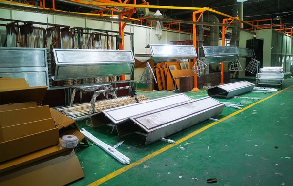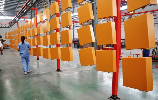 德國(guó)進(jìn)口的全長(zhǎng)250米的全自動(dòng)噴涂生產(chǎn)線,以及木紋轉(zhuǎn)印車(chē)間。